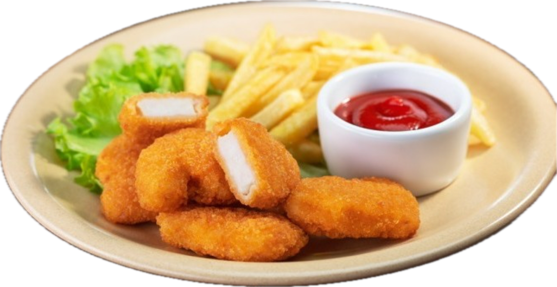 6 stk nuggets med pommes og ketchip